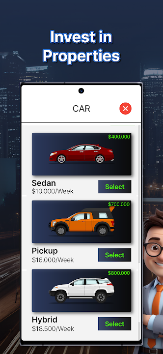 从基层员工做起,在这款投资游戏模拟器中管理和投资您的资金,打造您的商业帝国,称霸城市!