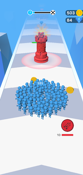 Master the art of crowd control – avoid obstacles, utilize power-ups wisely, and maximize the number of characters that reach the castle gates.