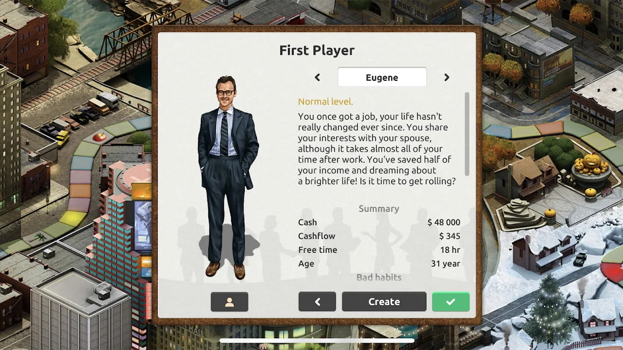 Your game goal is to achieve financial freedom and make the dream of your life come true!