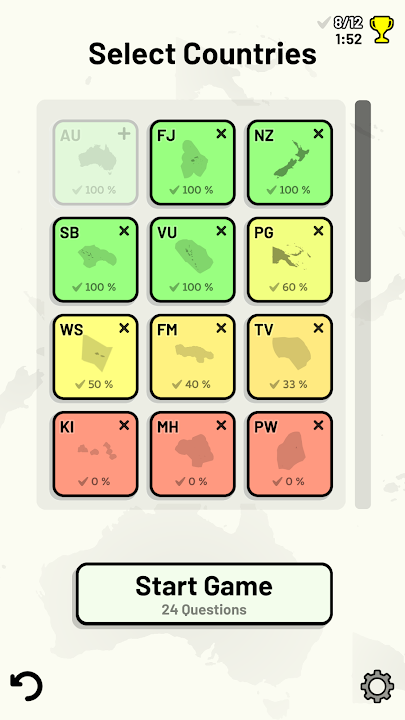 标准测验允许您通过一系列级别来学习每个主题,每个级别涵盖更多国家/地区。