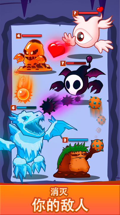 带领你的元素军队投入激烈的战斗,在快速竞技场中挑战对手。运用聪明的合并策略来反制敌人,规划阵型,确保胜利。