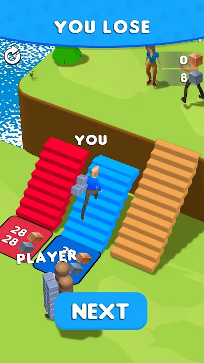You have to collect resources and build a bridge out of them. There are quiet levels where you will be alone. But over time, other contenders for the heart will appear. Get through the fastest and you'll be rewarded. You will also build castles for your beloved.