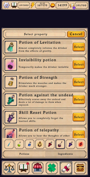 Feel like a real alchemist by studying the properties of the ingredients and mixing them to get various potions.