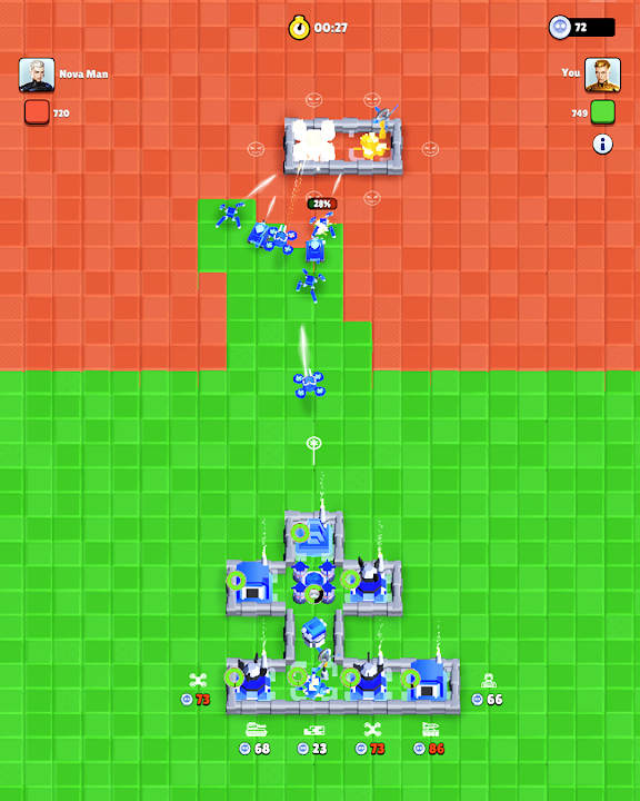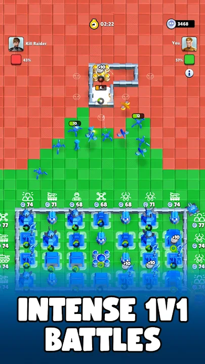 加入《方块战争》的战场,这是一款激烈的 PVP 策略游戏,你的领土决定你的胜负。与对手作战,扩大你的领地,并在时间耗尽之前部署强大的防御工事,保卫你的土地。
