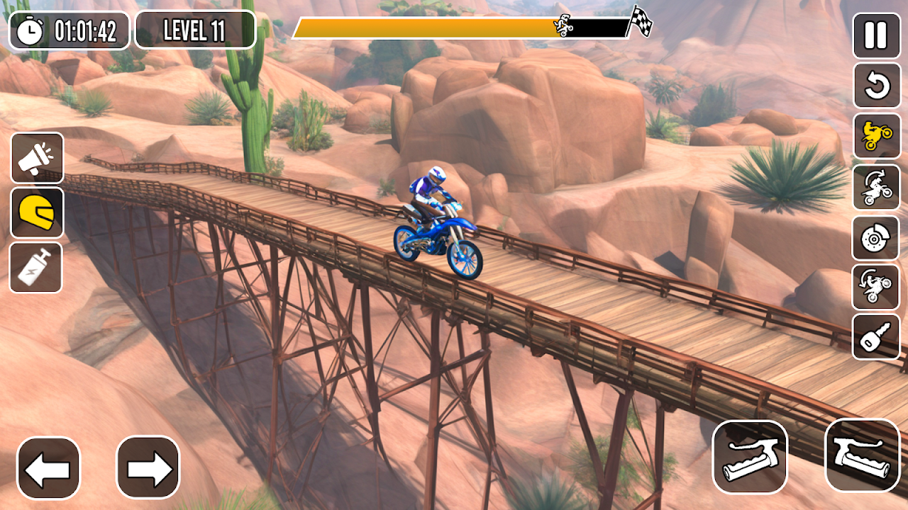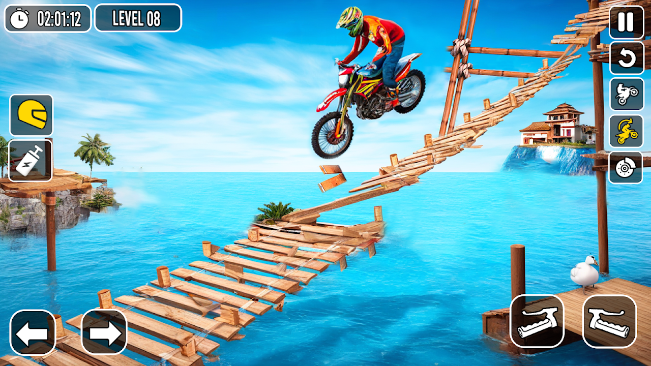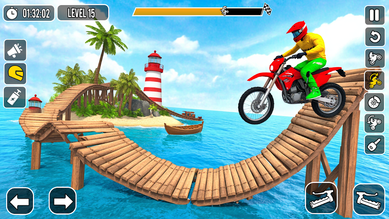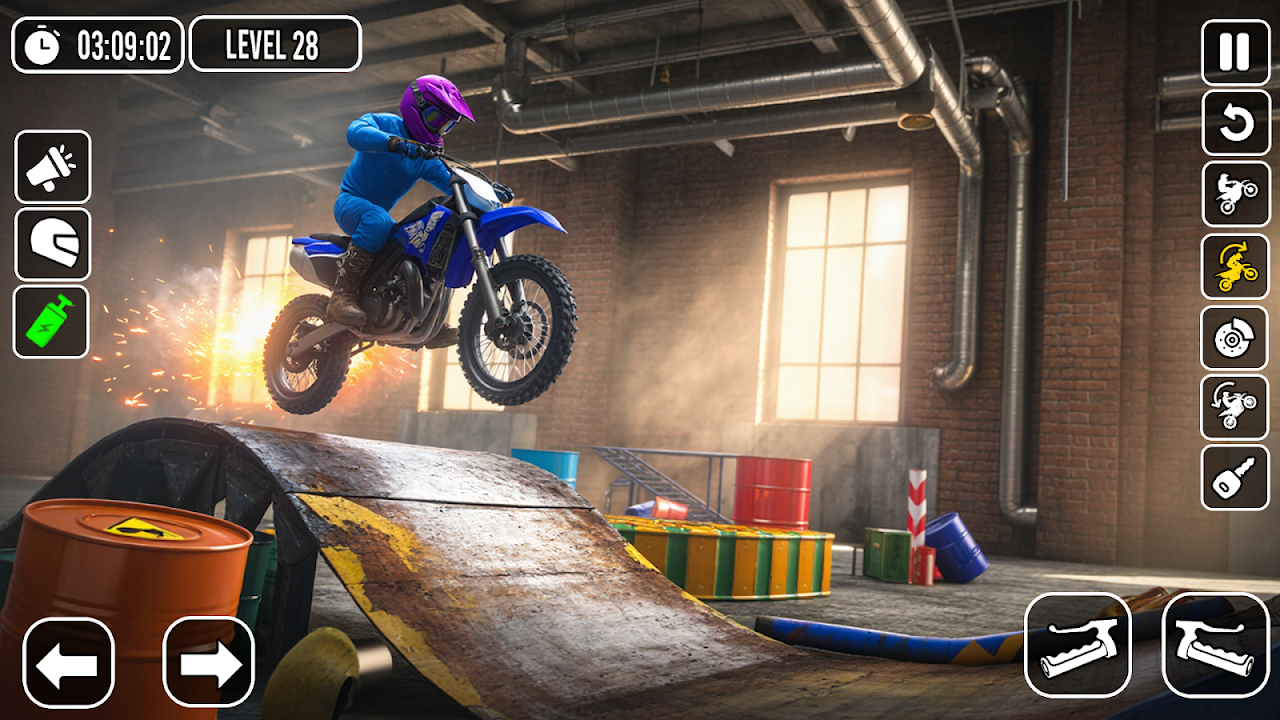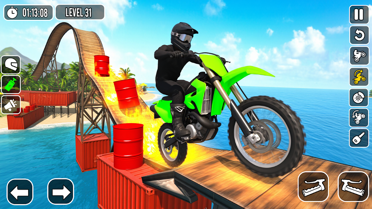 在惊险刺激的特技关卡中展现你的技巧!跳跃、翻转,驾驶你的摩托车穿越充满挑战的障碍、棘手的坡道和高耸入云的赛道。每个关卡都旨在考验你的平衡性、速度和精准度。
