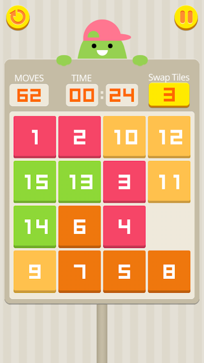 幻燈片的數量是基於15難題,包括隨機順序編號的瓷磚與一個區塊缺少一個滑動拼圖。