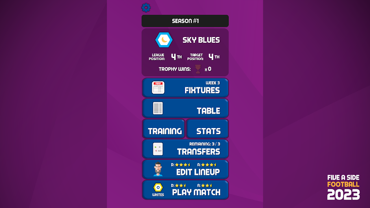 全新的训练系统让您可以升级设施并提升球员水平;此外,老球员老化系统意味着老球员将退役,并由崭露头角的年轻新星取代。此外,简单的转会系统让您可以组建一支拥有搞笑名字的梦幻球队,角逐冠军!所有这些,都无需您费心打理复杂繁琐的电子表格;只需选择五名状态良好的球员,告诉他们进攻还是防守,即可开始!这款足球管理游戏的设计初衷就是为了带来即时的乐趣!
