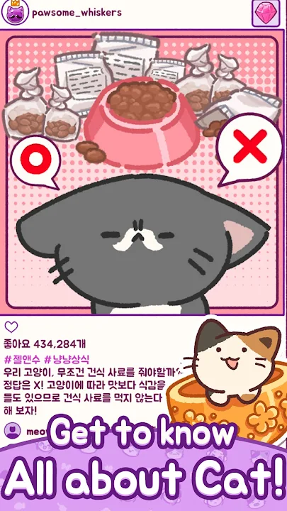 Our game studio, which received great love from gamers for our previous work <30 Days>, developed with the goal of raising awareness about suicide prevention, now aims to deliver a social message of "improving awareness of pet adoption" through this game . If you are a prospective pet parent willing to adopt lost or abandoned animals but are unsure of the procedures or current status, you can naturally gain such information while playing . Upload your daily life with your furry friends on the virtual SNS, ""MeowMeowStar,"" and enjoy a unique experience of growing into a catfluencer. Cute cats and various collectible elements are ready to captivate you.