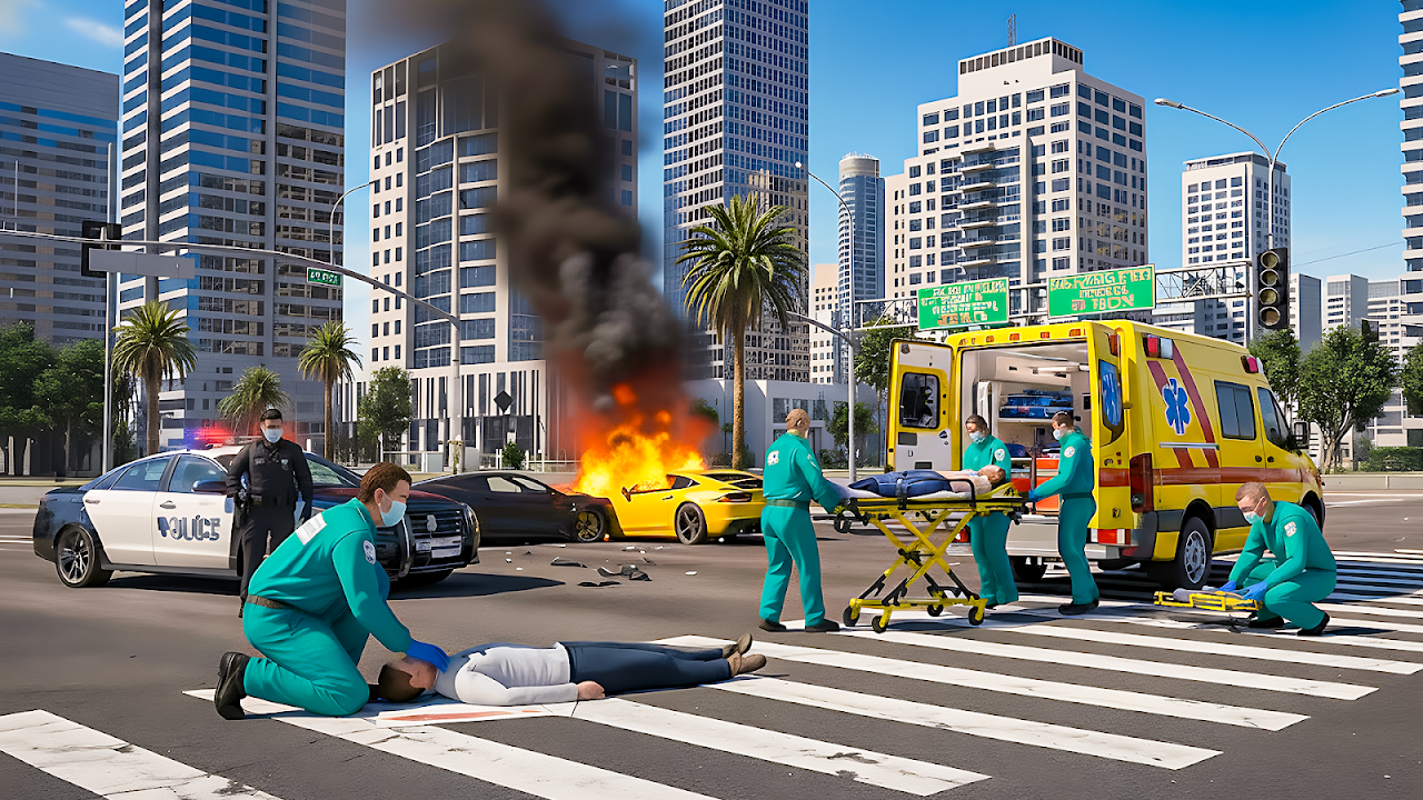 快速穿越城市,拯救生命,成为救护车驾驶大师。