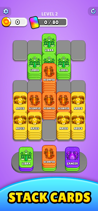 Sort & Stack Zodiac Cards! Can you get to level 100?