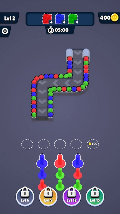 Tap on the spools and send them onto the conveyors. Each spool will collect thread balls of its own color, and once it reaches the required amount, it will contribute to the objective.