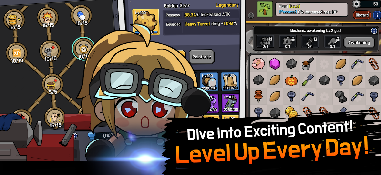 随着机械师与众多机器和怪物的交手,他的背包里积攒了越来越多的零件。合并零件,打造更强大的零件,并唤醒它们,让它们变得更强!