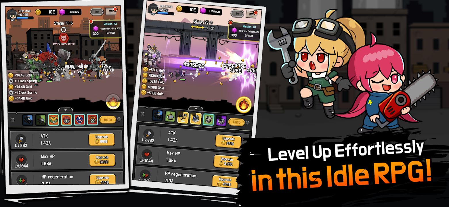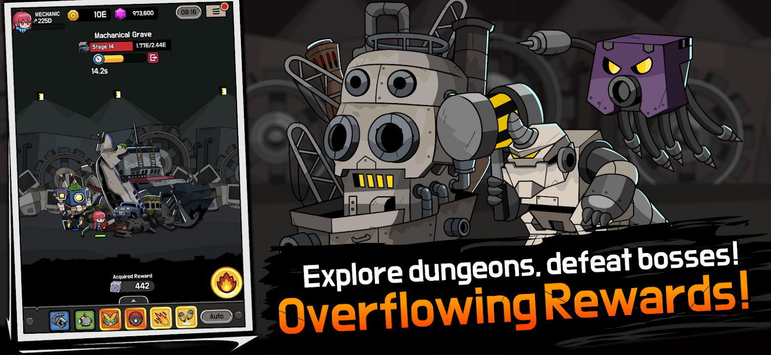 角色即使暂时离开也能自行增强!机械师和机器人都配备了最新的 AI 技术。它们可以通过在 24 小时内无需任何控制或连接即可击杀怪物来增强实力!