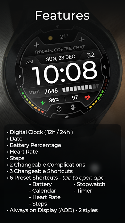 - 兼容 API 级别 33 及以上的 WEAR OS 设备