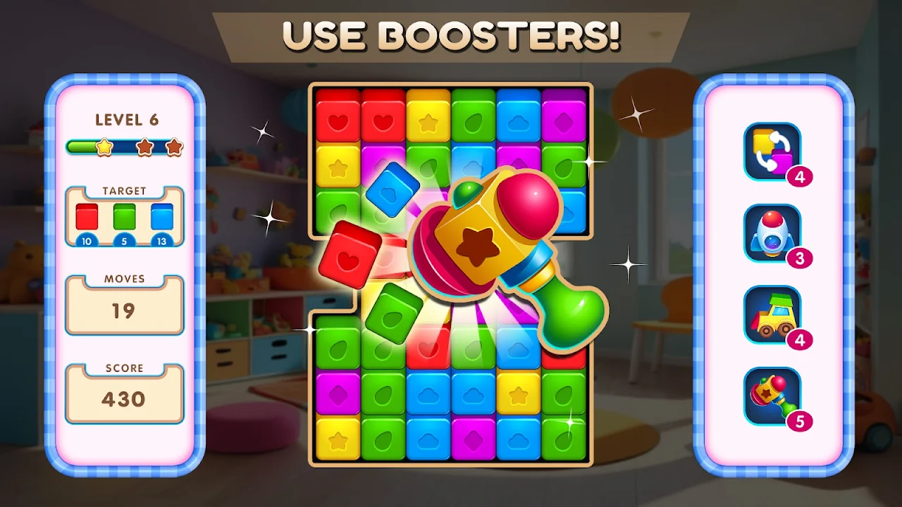 Enjoy a fun and complete match puzzle adventure made for all ages. Combine colors, plan your moves, and use smart boosters to overcome tricky challenges. Itโ€™s the perfect way to relax, focus, and train your brain while having fun!