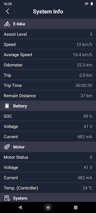 您可以控制輔助級別並從儀表板上查看當前狀況,例如當前速度,行程時間,行程距離,輔助級別和電池狀態。
