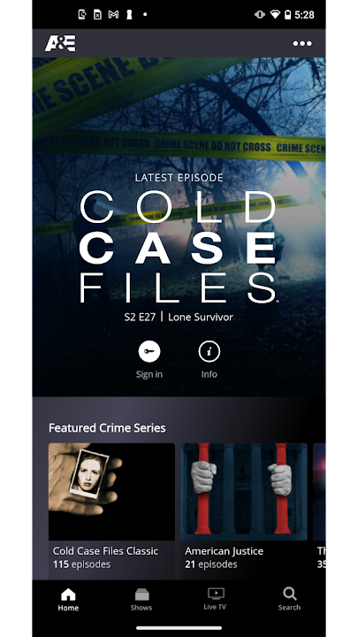 The A&E app is free to use. If your TV Provider is supported, you can sign in and get access to even more content.