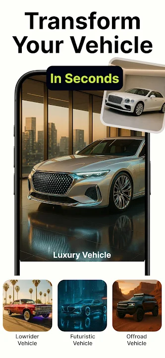 AI Car Designer Modify & Tune 是一款終極的人工智慧應用程序,用於車輛客製化、汽車調整和設計視覺化。無論您是想應用新外觀、安裝寬體套件、升級車輪、更改油漆顏色,還是從頭開始構建您的夢想座駕 - 該應用程序只需幾秒鐘即可將您的想法變為現實,並提供令人驚嘆的逼真效果。沒有工具,沒有經驗,沒有麻煩。只是純粹的創意!