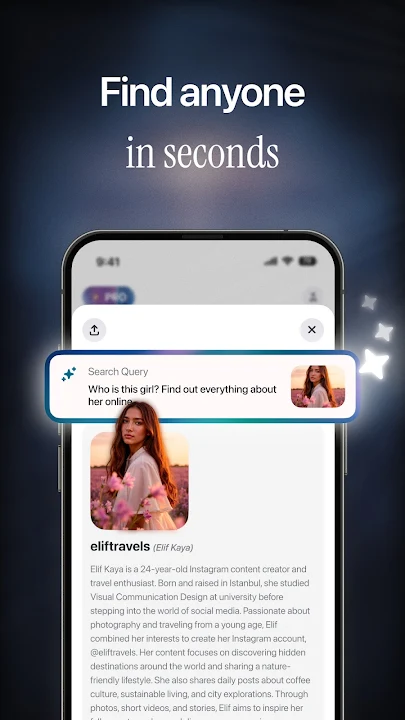 利用智能筛选器和丰富的搜索结果,探索面孔、兴趣和背景。