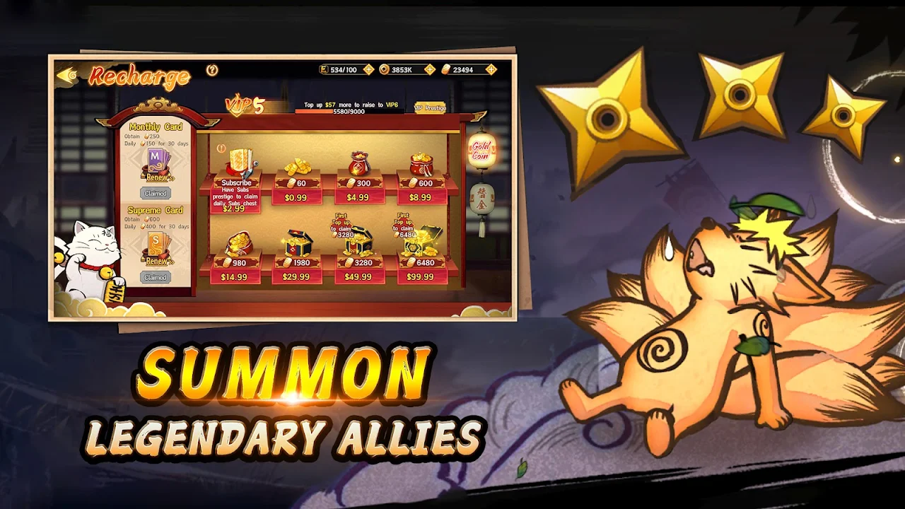 Rich Ninja Roster: Recruit hundreds of classic ninja characters, build your ultimate team, and face various challenges together.