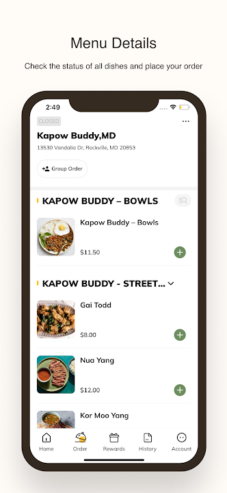 Check the status of all dishes and place your order.