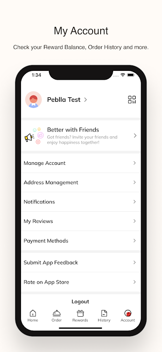 检查您的奖励余额、订单历史记录等。