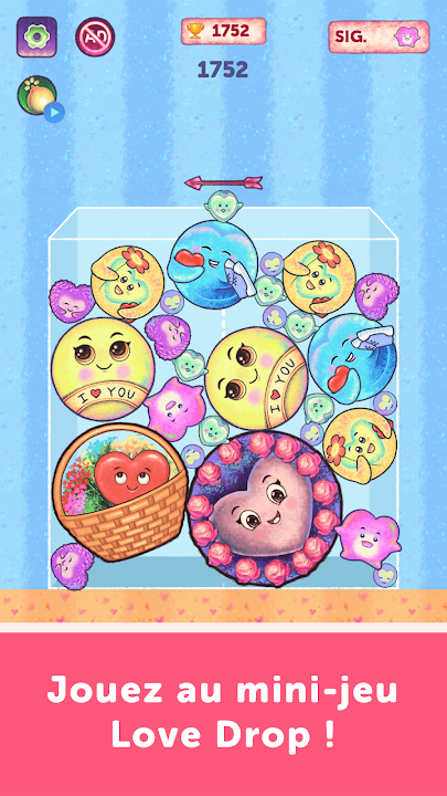 📢新!在 Love Messages 中玩 Love Drop,這是一款有趣且令人上癮的迷你遊戲! 🎮💕 合併愛心,獲得最高分並放鬆。升級到高級版即可暢玩無廣告打擾的遊戲!