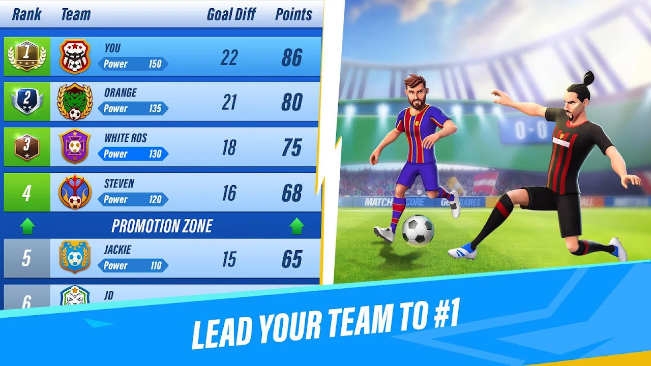 - Never-ending fun: even in tough matches against strong opponents, experience intense moments and score the winning goal.