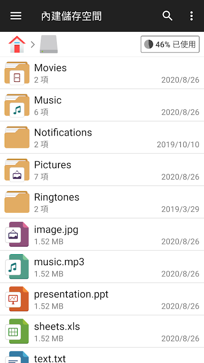 •主存儲:您可以管理本地設備存儲的所有文件和文件夾。