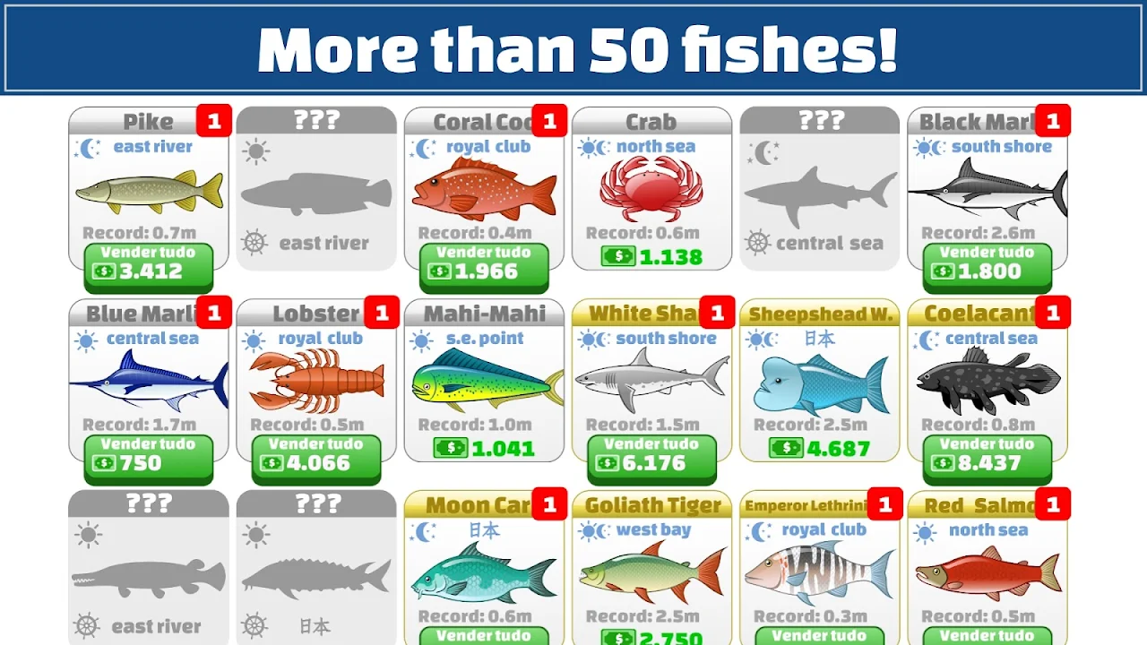 购买游艇和船只。沿着海岸扬帆起航,成为一个闲散的钓鱼大亨. Buy Yachts and Boats and become a fishing tycoon