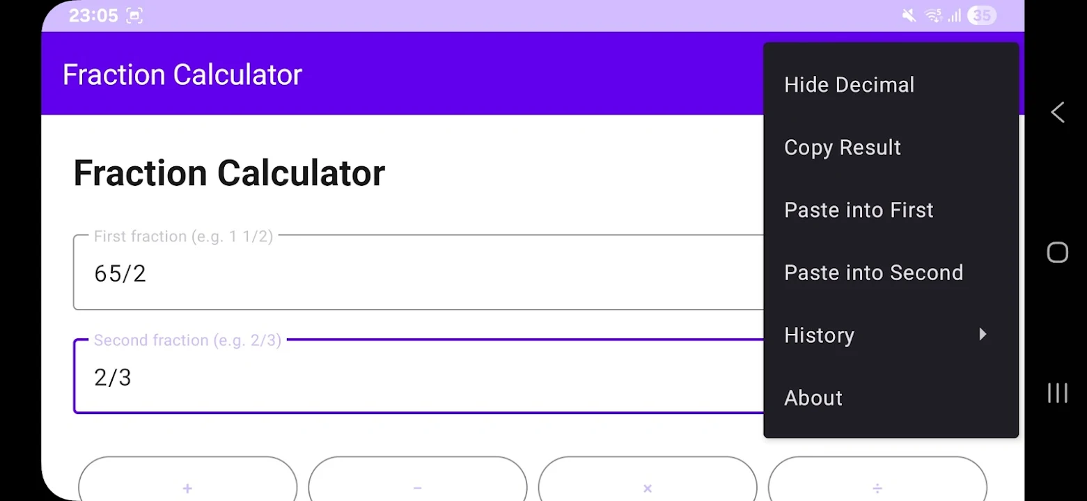 即时小数预览——切换即可查看小数形式的结果(例如,1 1/2 + 3/4 = 2 1/4 ≈ 2.25)。