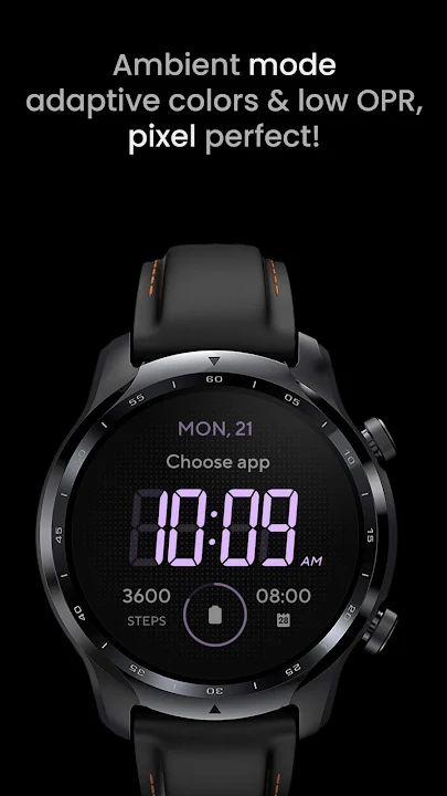 Unique LCD digital display Wear OS watch face. Sporty look. Polished graphics.