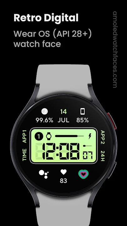 「卡西歐」風格 Wear OS 復古數位電池友善且可自訂的錶盤