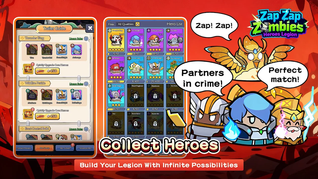 招募并升级各具特色的英雄,每位英雄都拥有特殊技能和定位。尝试不同的队伍组合,探索坦克、输出和辅助角色之间的强大协同效应。打造完美军团,征服所有挑战!
