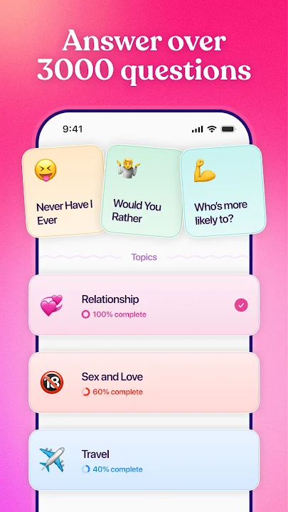 - Build intimacy with meaningful daily questions.