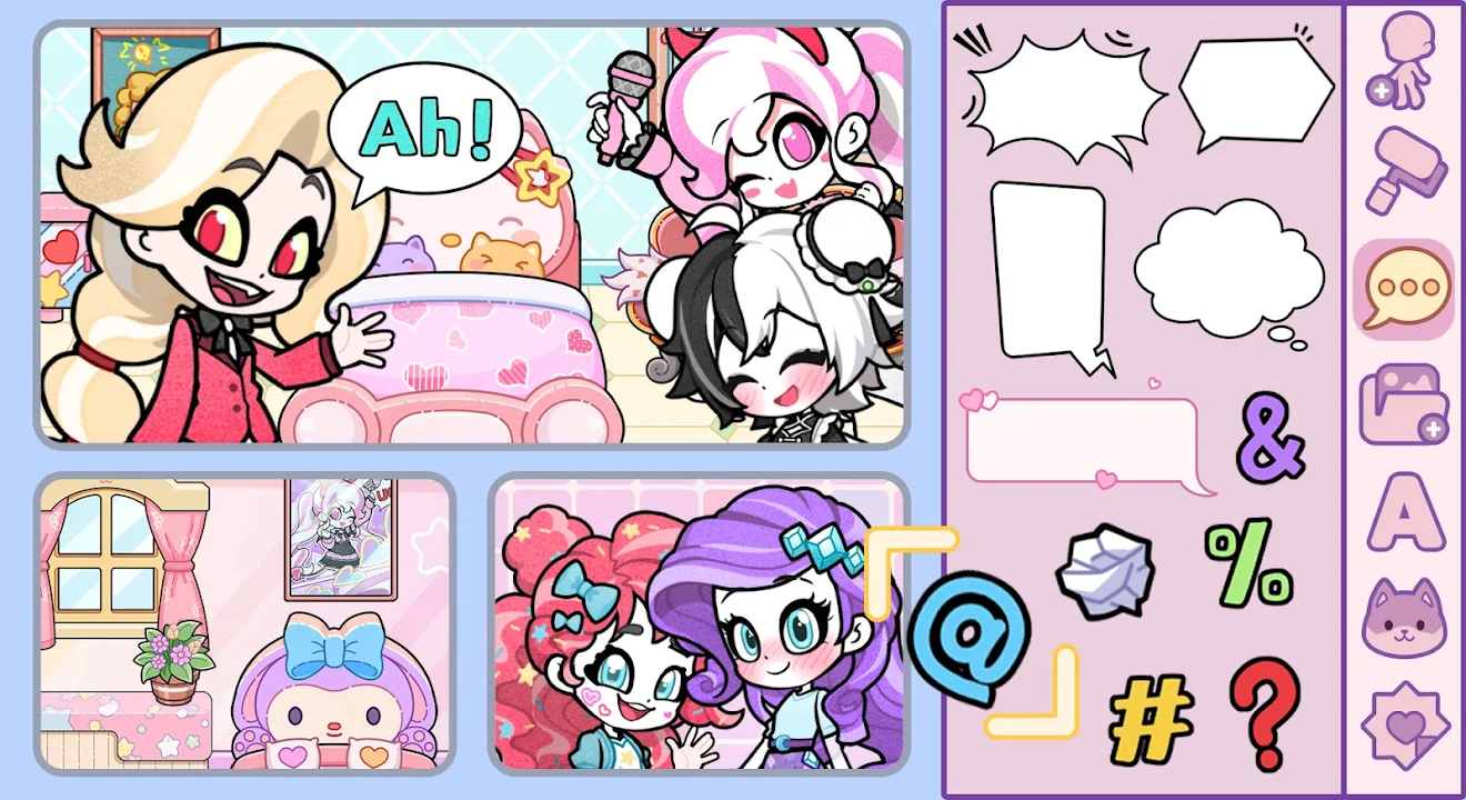 Think a single room is too simple? Don't worry, you can choose scenes, insert different rooms and characters, and design it like a comic! Modify room decor, insert different rooms, add various characters, and create your story, giving it a comic-like effect! Sounds cool, right? Check it out now!