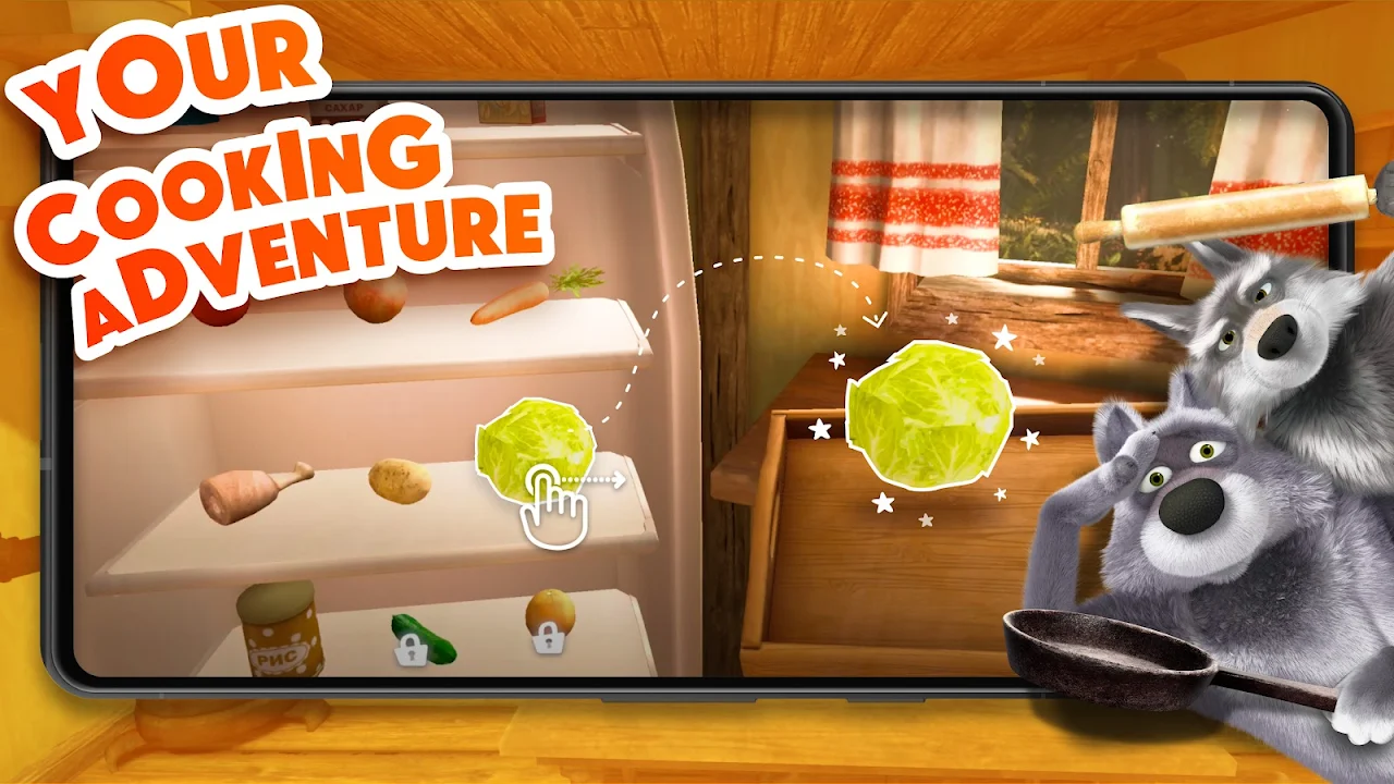 傻狼、小猪罗西、兔子和企鹅来拜访玛莎,请她喂他们吃饭。每位客人都带来了新鲜食材——总共超过 50 种——玛莎需要用这些食材烹制美味佳肴并送到他们手中。完成任务后,客人们会奖励玛莎新的食材,让她制作更多菜肴,还会赠送奖牌,解锁时尚的厨师服装。孩子们可以探索不同的食谱,尝试各种烹饪工具,学习如何将不同的食材组合起来,创造出美味佳肴。