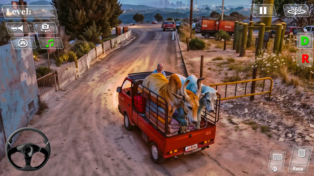 关卡 2:驾驶货运卡车将牛从农舍运送到养牛场。