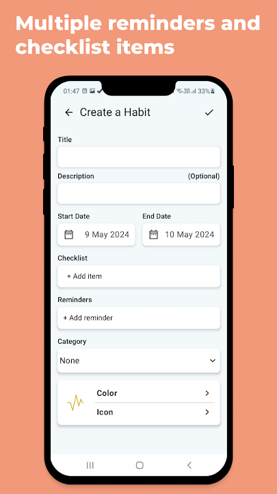 No limit on Habits. Create unlimited Habits and reminders for in Habit Tracker app.