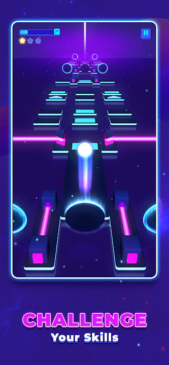 Your simple mission is to keep the rolling ball safely on the tiles during its journey in the dancing road while carefully listening to the rhythm.