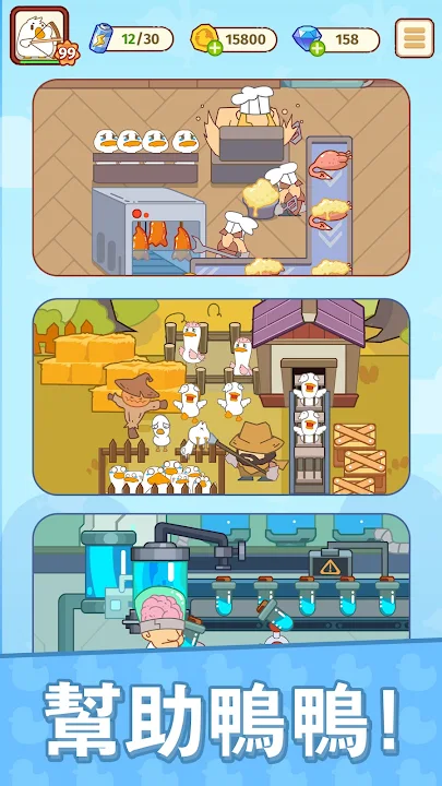 歡迎來到《人鴨大戰》,一款充滿創意和幽默的放置休閒遊戲!在這裏,您將與一群聰明又搞怪的鴨子一起,抵禦人類的入侵,保護鴨子們的家園。無需按鍵,只講究策略!