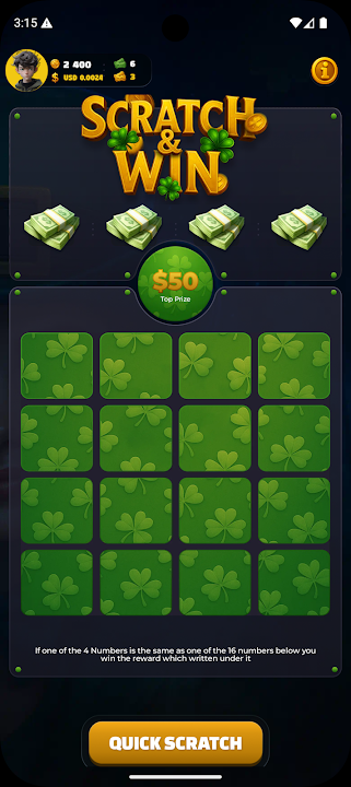 Say Hello to Premium Scratch Cards! Try out your luck today! Scratch cards and unlock daily rewards! 4 Different scratch cards! Try it now! Scratch today and get as much as you can! Invite your friends. Join now and enjoy. Let the game begin!