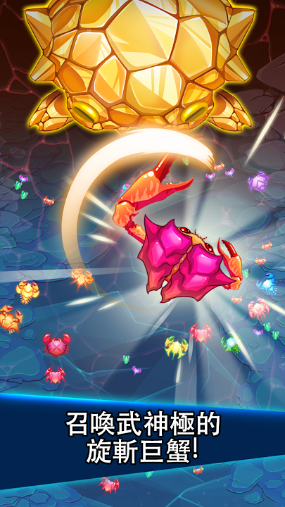 螃蟹們原本自由自在的在地表上生活。突然有一天,那傳說中的巨型爬蟲獸突然降臨大地並肆虐的吞噬著螃蟹們的家園。螃蟹們在沒有辦法抗衡下紛紛的潛入了地底深處。過了幾個世紀後…… 這些螃蟹由於長期被地底深層的水晶輻射影響,導致螃蟹們逐漸地進化了。在長時間抵抗輻射的情況下,它們的鰲爪和外殼都變得猶如水晶般地鋒利,鑽石般地堅硬!它們已經準備就緒!螃蟹大軍準備出擊!壯大你的螃蟹大軍吧!協助他們進化,幫助他們奪回自己的家園!