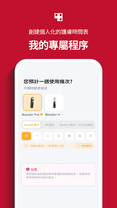 您可以輕鬆透過主頁和推播通知,了解每天需使用的美容儀。