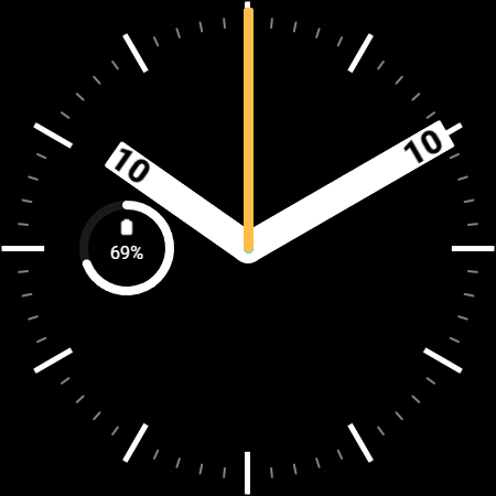 簡單的 Wear OS 錶盤表面上看起來是模擬的,但在時針和分針上整合了數位時間以供快速參考。配有 3 個位置來放置您選擇的複雜功能,並允許您更改秒針的顏色以符合您的喜好。