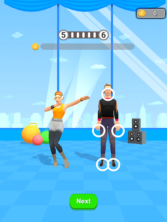 你要和你的舞伴一起完成舞蹈。舞伴会给你示范,你需要跟着他的舞步。我们一起完成舞蹈吧。