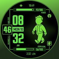 Immerse yourself in a unique and captivating post-apocalyptic world filled with retro-futuristic technology through this watchface. Inspired by the iconic interface of a versatile handheld device commonly used by inhabitants of underground shelters, this watchface features a cheerful and optimistic character, who embodies preparedness and resilience in the face of any challenge.