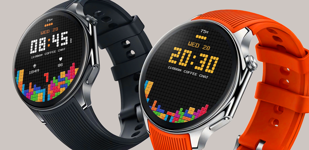 Digital game-inspired watchface for Wear OS with animated time blocks