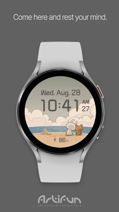 !仅支持圆形表盘!适用于 Wear OS 的数字表盘ㆍ显示:日期、时间、电池百分比ㆍ动画效果:耳朵和尾巴轻微移动ㆍ背景颜色 : 从 8 种颜色中选择