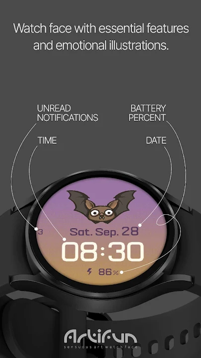 Animated Illustration Watchface (Date, Time, Battery percent)
